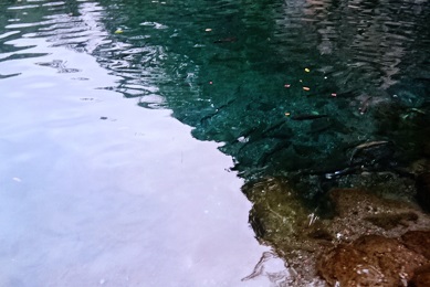 やや濁っている下池!!右側に写っているのは誰かな?