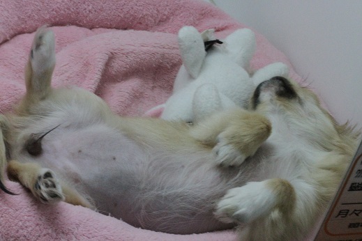 MIXちゃん(トイプー×マルチーズ)も直寝!