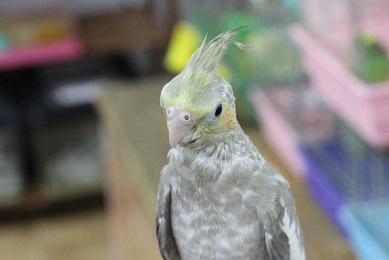 オカメインコのシナモンカラーの子です。