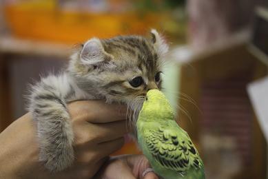 恒例のグリちゃん(スタッフの愛鳥)とのふれあいタイム