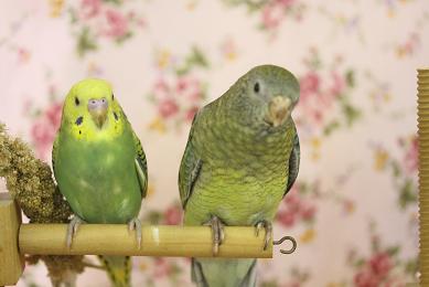 美声さんはとても大人しくセキセイさんに頭をカキカキさせていました。