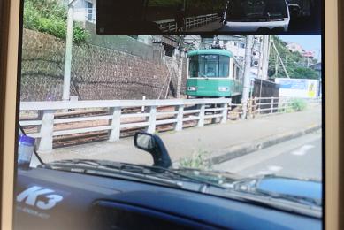 分かります?江ノ電の線路です、路面電車部分なんですけど、電車が来たらと思うと