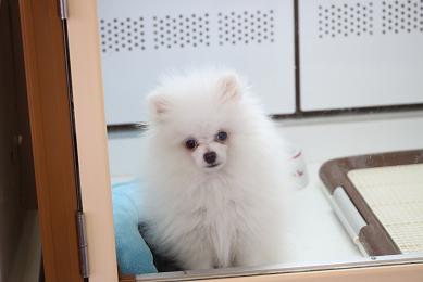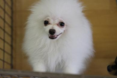ホワイトポメラニアンはちゃんとオスワリしてくれています。