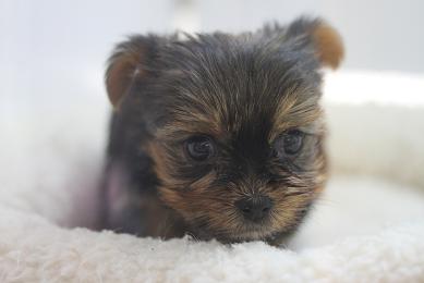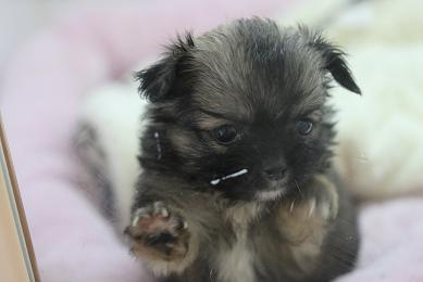 きました、ヨークシャテリアのスチールブルータンカラーの男の子です。
