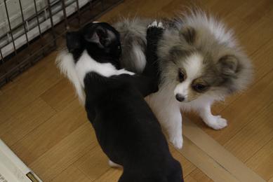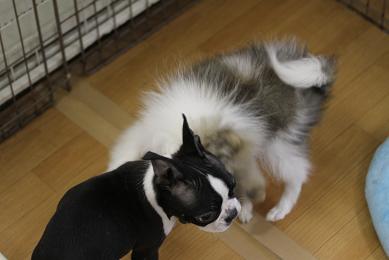 早速先輩のポメ君とあそんでます。