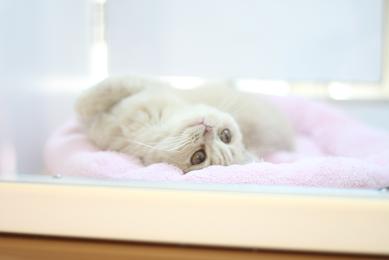 もはやベットの一部と化したブリチッシュショートヘアーの男の子