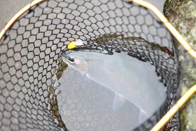 反射しちゃってますがいいマスちゃんが釣れましたよ。
