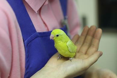 こちらの手乗りの子は同じくマメルリハのアメリカンイエローの女の子です。