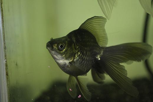 この琉金もすごい色ですね、緑と表現するのが近いと思います。
