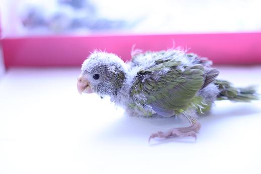 まだうぶうぶのアオハシインコです、カラーはシナモンです。