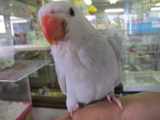 こちらのパールオカメちゃんは勝田台店でだいじに手乗りに仕上げられた子です。