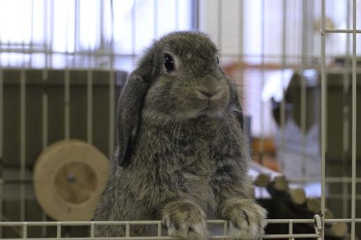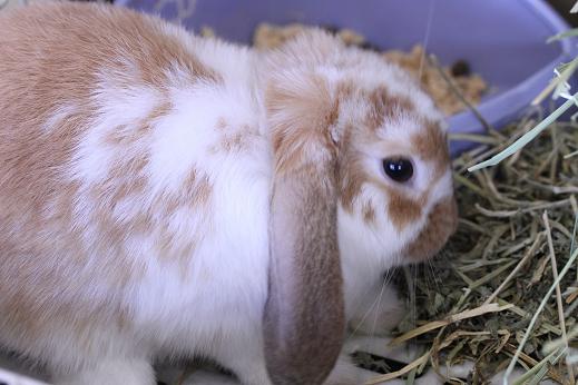 おいしそうに牧草をほうばっているのはロップイヤーさんです。