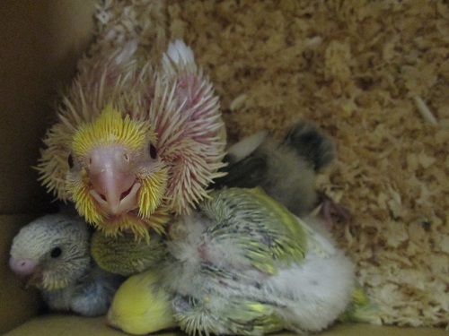 やる気みなぎるオカメインコさん セキセイスパングルさん×2名