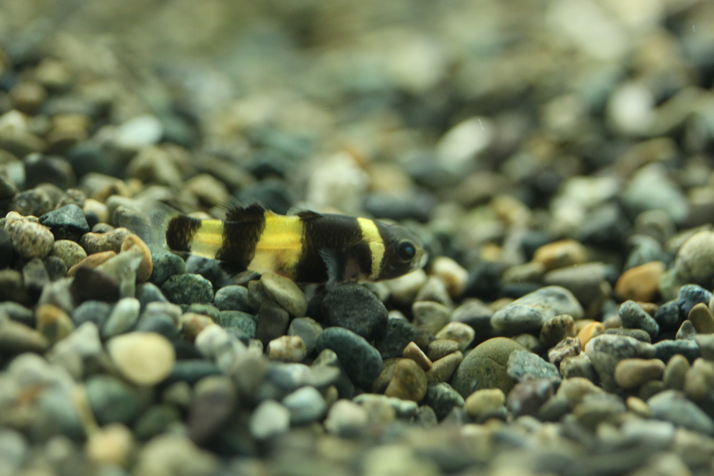 黄色と黒のストライプがとっても可愛い小型の魚。