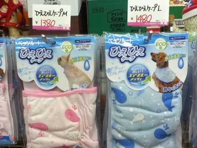 お散歩時の携帯用カップやひんやりするジェルマットや体に直にまくケープなどなど。。。