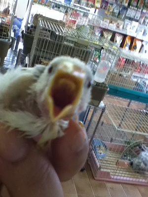 みー、っと言ったり、おはよ~ バイバイと いろいろもぞもぞ話して始めてます。噛む力も、ヒナのころより加減ができるようになり、やわらかで全然痛くないです。ずっと肩に乗って甘えてくれて本当にかわいいです。