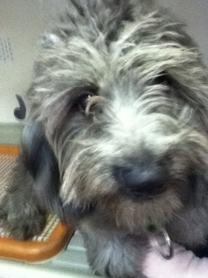 入口のお出迎え犬 ジャンボ(トイプードル)、みんなにかわいがられて、笑顔が増えています。