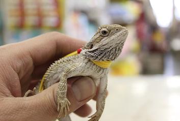 当店のフトアゴヒゲトカゲ。只今特訓中。なにを?