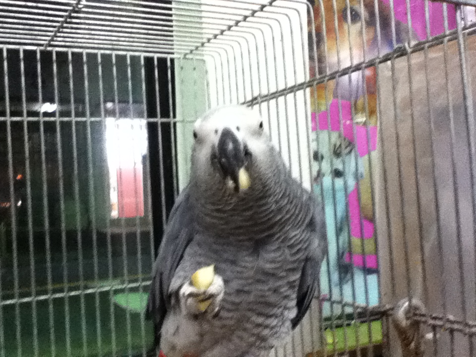 (おやつ大好き☆ヨウム・ヨウちゃん ただいまリンゴ中~~)