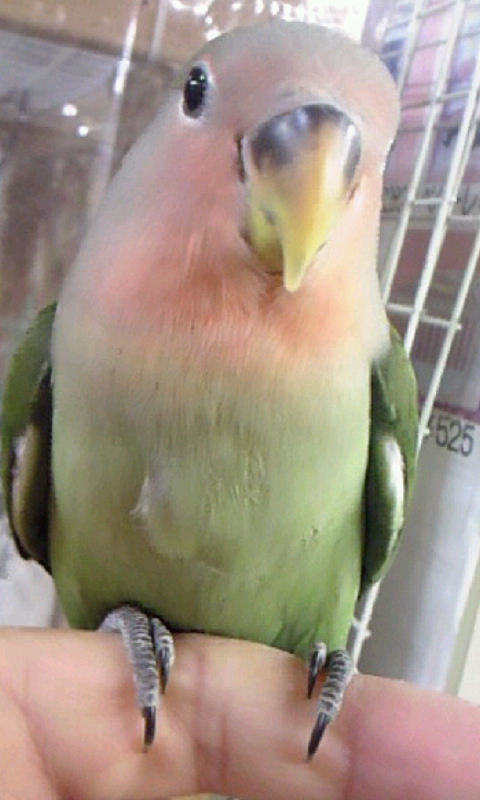 このコはコザクラインコのノーマルさんです、ひなのごはんが終わったくらいの若いコです。とっても甘えん坊さんで、隙あらばスタッフの肩に乗ろうとしてきます♪ 他にも 新入りコザクラインコさんが2羽います、優しいキレイな色合いのコたちです。