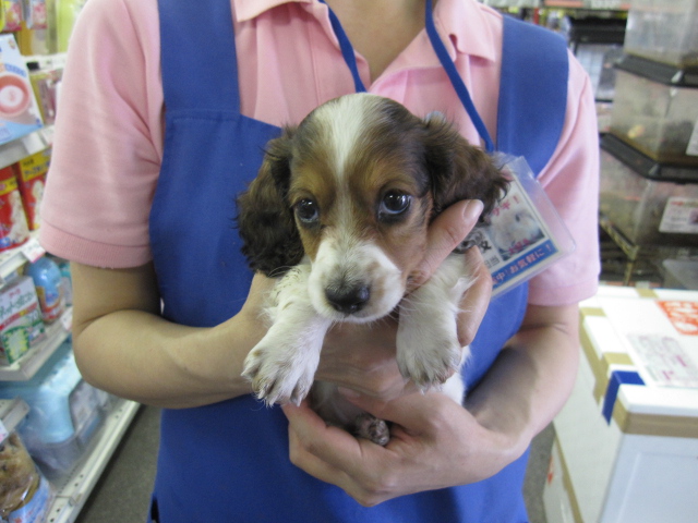 ミニチュアダックスフンドの珍しいカラー(パイボールド)の女の子