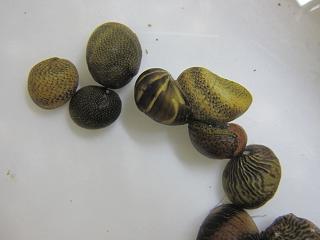 カラフルな石巻貝 みんな違う模様で、かわいいです。