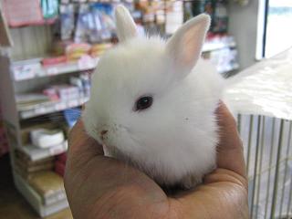 黒ちゃんの正反対の真っ白なドワーフラビットの女の子