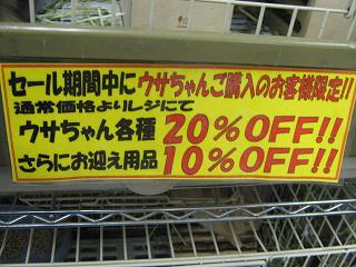 でご紹介したとおり、ウサちゃん各種通常価格から20%オフになります