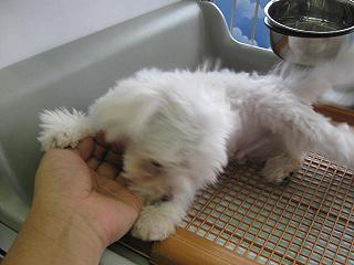 ちなみにこの仔の毛色はクリームで耳と尻尾は茶色に染めて