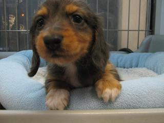 まず一頭目は、生後約一ヶ月半ダップルのミニチュアダックス