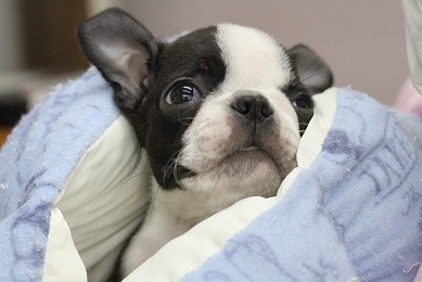 昨日当店にお迎えしたばかりのボストンテリアの男の子
