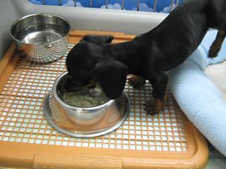 ツルツルのダックスちゃんは食欲も旺盛で、出されたゴハンも