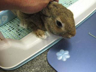 まつど店玄関口近くにいる、ドワーフラビットのカンちゃん