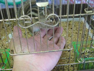 スタッフ(ジュン)も負けじと違うシマリスの子を慣らし中