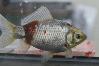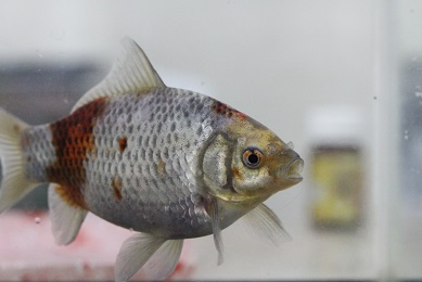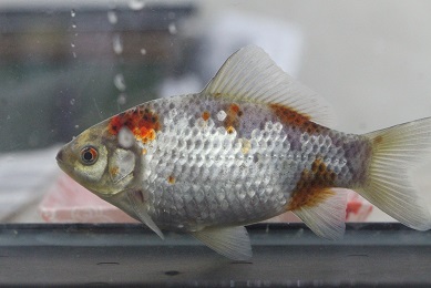 見事な体型の、銀鱗三色和金です。