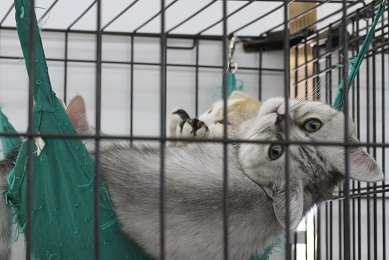 まつど店のサークルには3頭の猫ちゃんが居ますが、お気に入りの場所が