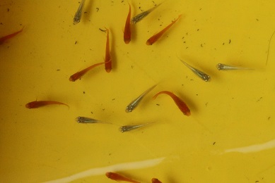 後、3色メダカが産卵していました。