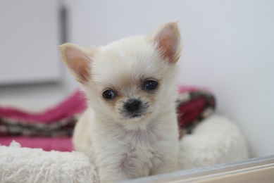チワワミックスがかなりの演技派で、こんな顔で見つめてきます。